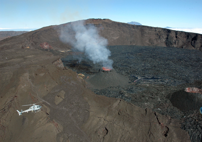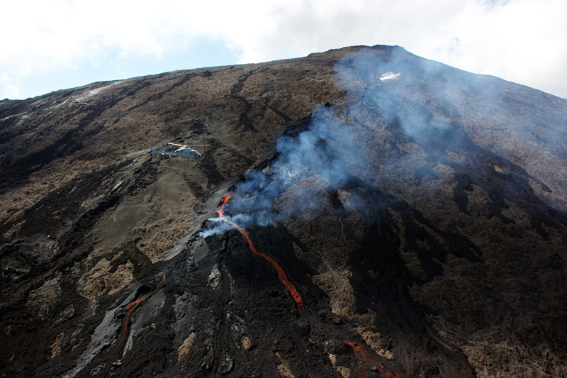 devant une éruption sur le flan du cratère Dolomieu