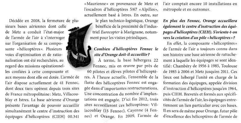 A partir de septembre 2011, la base aérienne 115 d'Orange accueillera une part importante de la flotte des hélicoptères "Fennec" de l'armée de l'air.