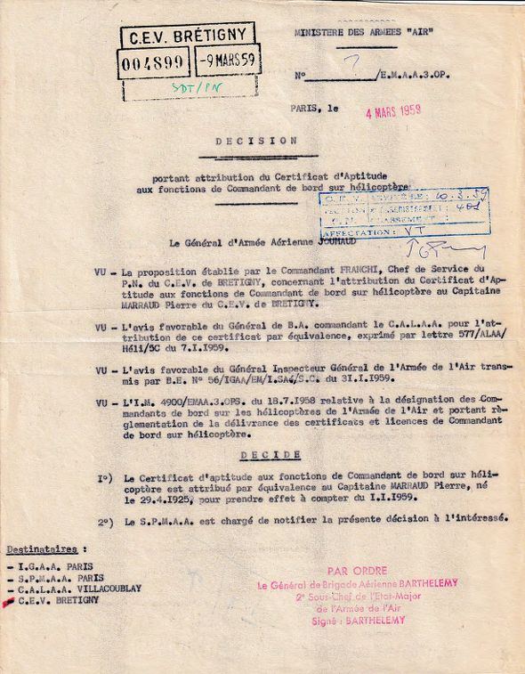 mars 1958, il est affecté à la 2ème Escadre d'Hélicoptères à