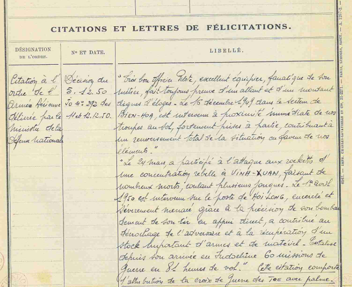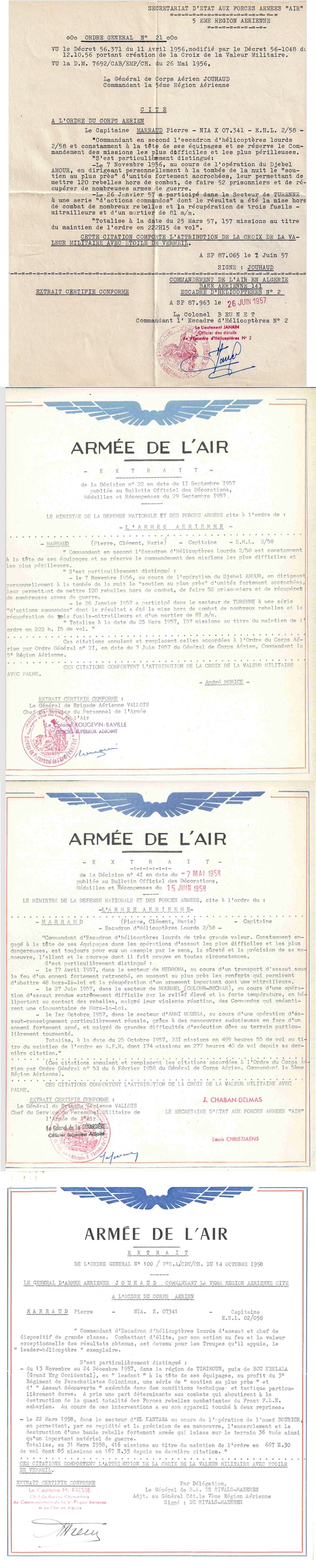 Citation AA Palme 11/09/1957, 07/05/1958. CA Etoile de vermeil