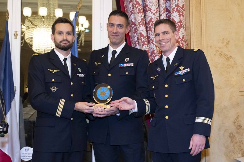 remise exceptionnelle d'un trophée commun à trois escadrons,