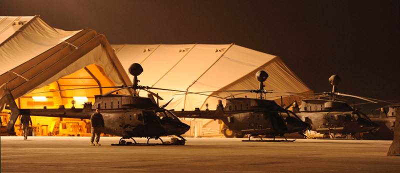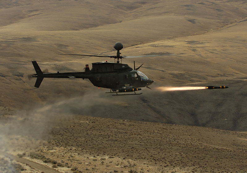 l'air, deux OH 58 Kiowa et un AH 64 Apache américains.