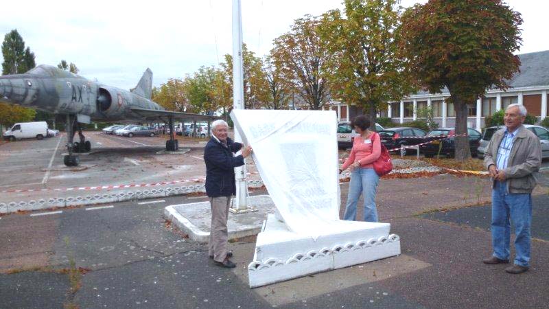 Le Col.Pierre Michel commandant la B.A. 217, dévoile la stèle, assisté des filles du Col.Brunet Mmes Chassin et Daumin