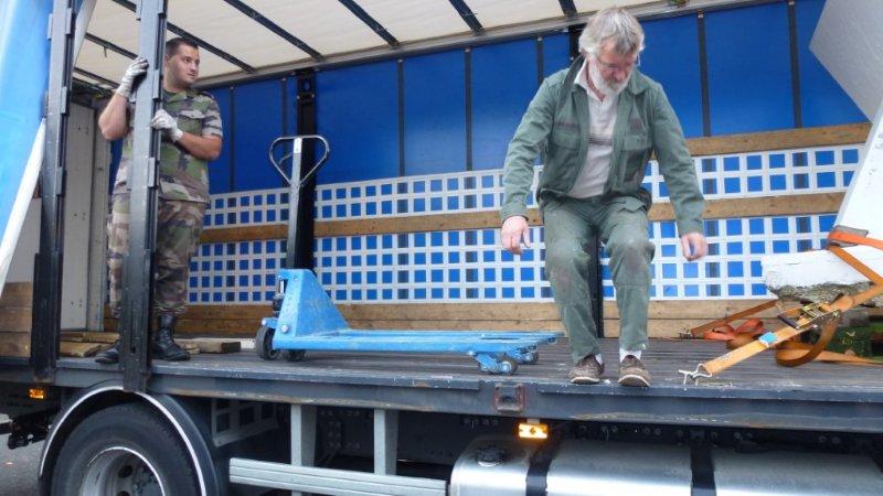 La stèle est arrimée et prête pour le voyage vers Quiberon