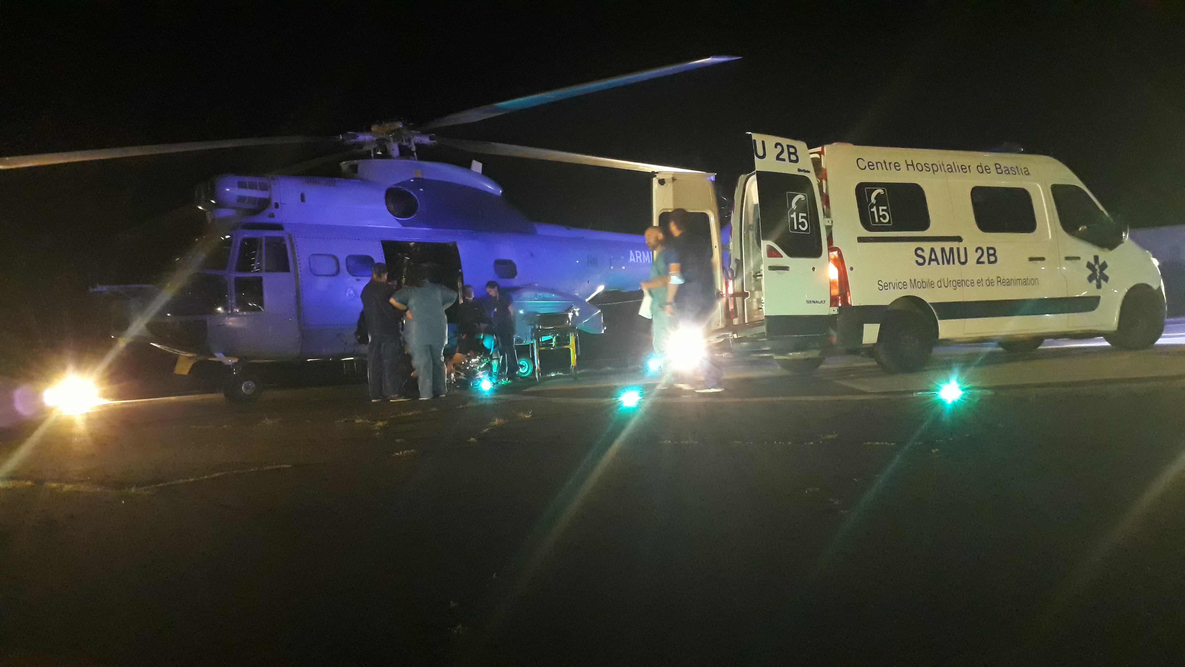 Une patiente doit être évacuée d’un navire à passagers pour être hospitalisée. L’équipage de l’EH, le docteur et l’infirmier de l’antenne médicale de Solenzara