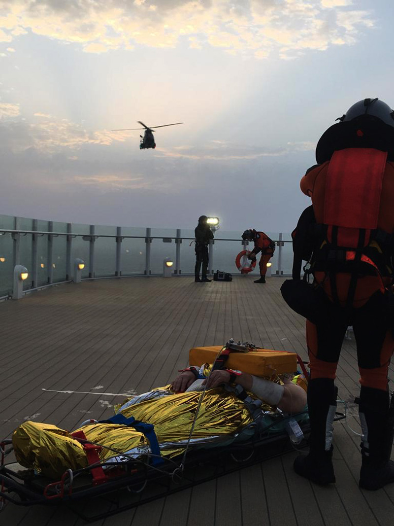 L’entraînement paye et les treuillages se déroulent sans accros. Les navires à passager évoluant en zone méditerranée sont de plus en plus aguerris à ce type d’évacuation