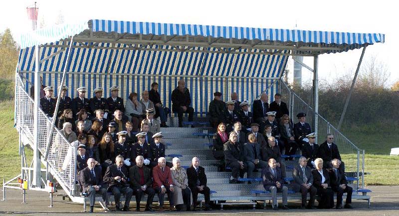 huit élèves pilotes et leurs parrains qui prennent place. |