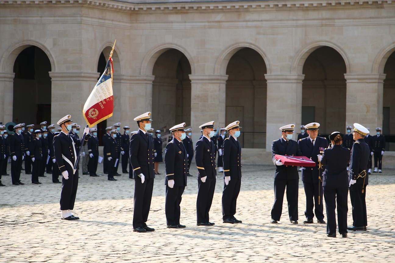 À 10 h50, le Vice-amiral d’Escadre (VAE) Stanislas de la Motte, major général de la Marine arrive. Après les honneurs au drapeau et la revue des troupes, remise de décoration à quatre récipiendaires officiers de marine et officiers mariniers.