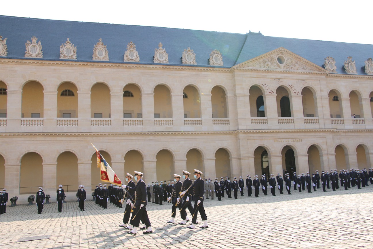 * Le Commandement de la Marine (COMAR) assure la garde du drapeau du Régiment Blindé de Fusiliers Marins (RBFM), unité de la 2e Division Blindée (DB) ayant joué un rôle important lors de la libération de la capitale en août 1944. Ce drapeau avait repris les traditions du drapeau du 1er Régiment de la Brigade de Fusiliers Marins laquelle, en 1914, composée en majorité de très jeunes bretons (dont beaucoup avaient à peine 16 ans ce qui leur vaudra le surnom de « Demoiselle au pompon rouge »), a été envoyée en soutien de l’armée belge sur l’Yser, lors de la course à la mer, sous les ordres du Contre-Amiral Ronarc‘h. Ils se sont illustrés, en particulier à Dixmude, tenant la position pendant 3 semaines au lieu des 4 jours demandés au prix de très lourdes pertes : la moitié de l’effectif, face à des allemands bien supérieurs en nombre. Ce haut fait d’armes a valu à la Brigade l’honneur de recevoir son drapeau des mains de Raymond Poincaré, Président de la République, en 1915. Première unité marine à recevoir un drapeau.