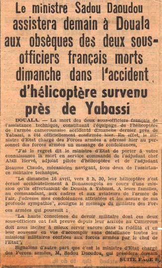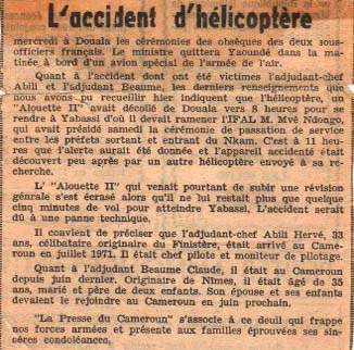 Je me permets de vous envoyer cette coupure de journal retrouvée avec de vieilles photos dans la boîte à souvenir de Jean-Yves.