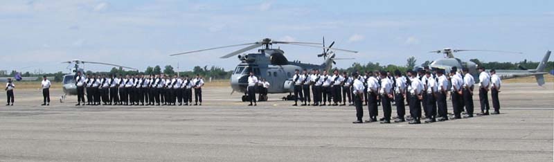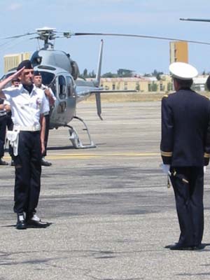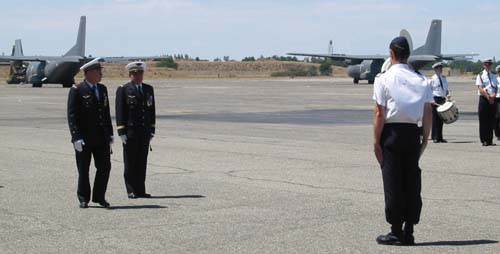 sont accueillis sur le tarmac par le Lt Colonel F. L. commandant le C.I.E.H.