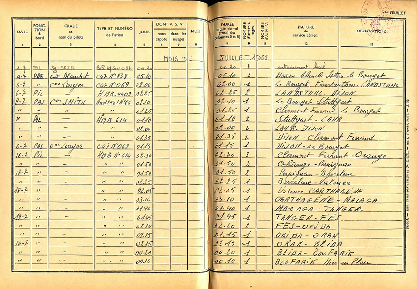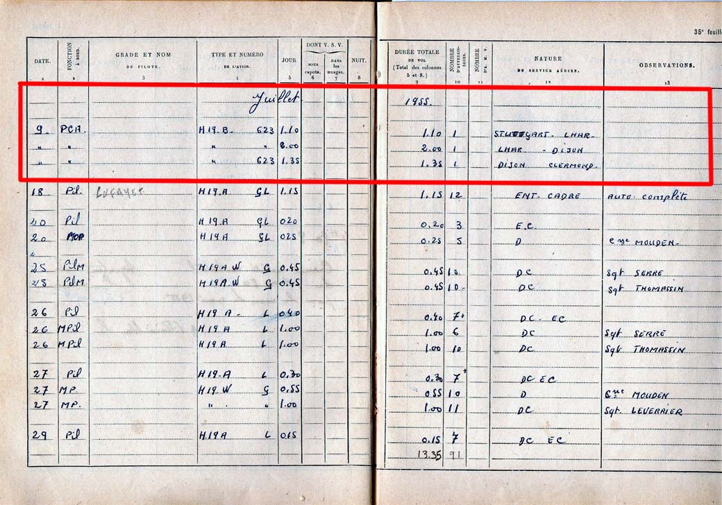 le carnet de vol de Raymond Dupret pour la liaison Stuttgart