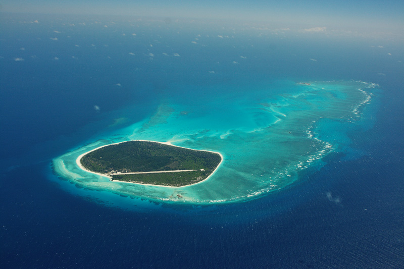 atterrissage sur la plage d’un îlot de l’immense lagon de