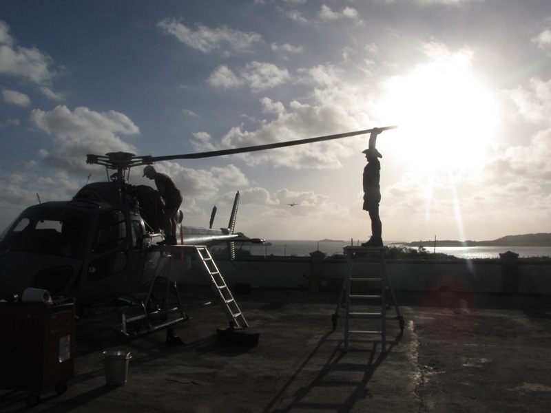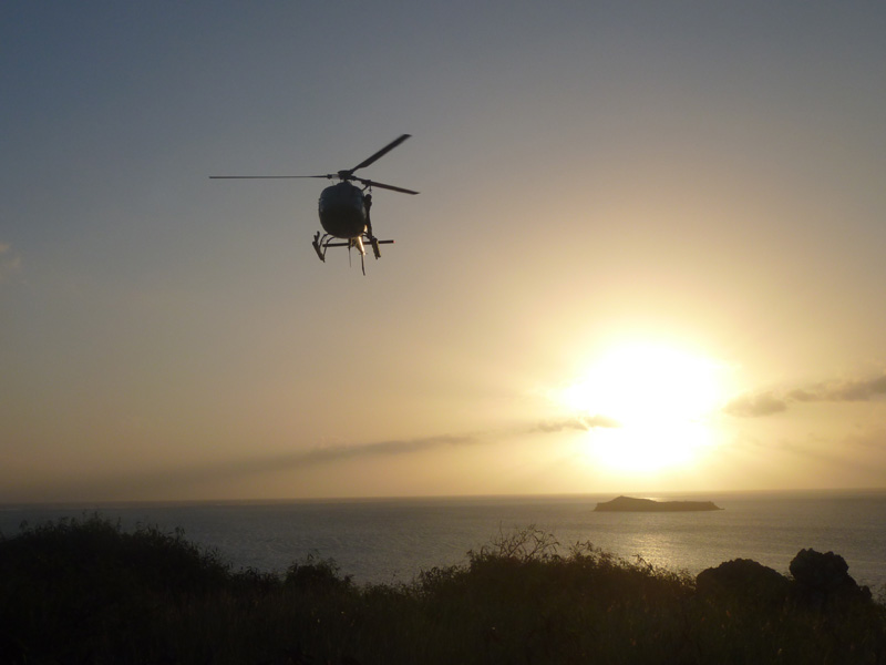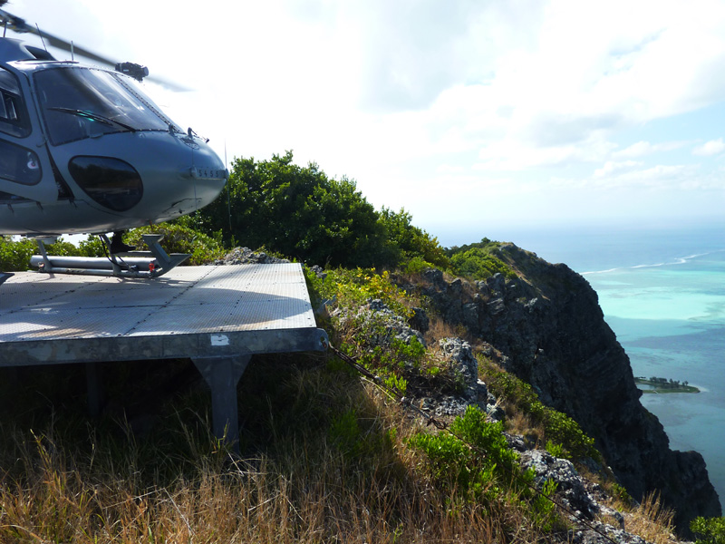 Atterrissage sur la plate-forme au sommet du Morne Brabant à