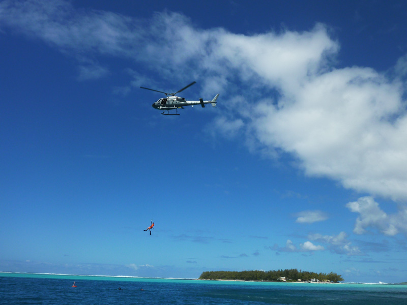 photo précédente, hélitreuillage à «Blue Bay» (Ile Maurice) |
