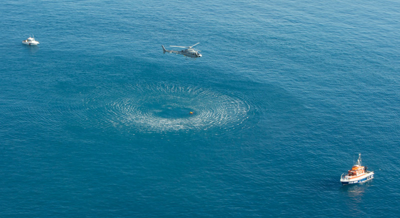 d’un plongeur de la gendarmerie depuis le pont du bateau de