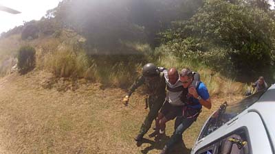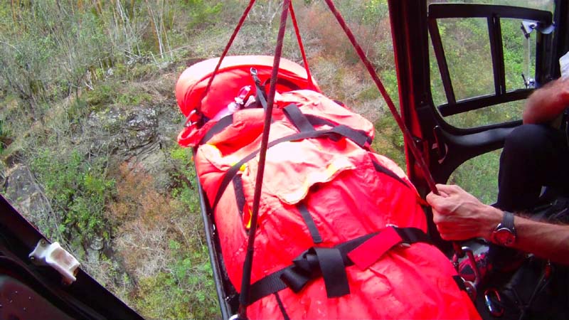 Récupération d’une victime sur le sentier de la