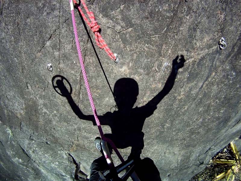 secouriste sur un relais en pleine paroi à proximité du