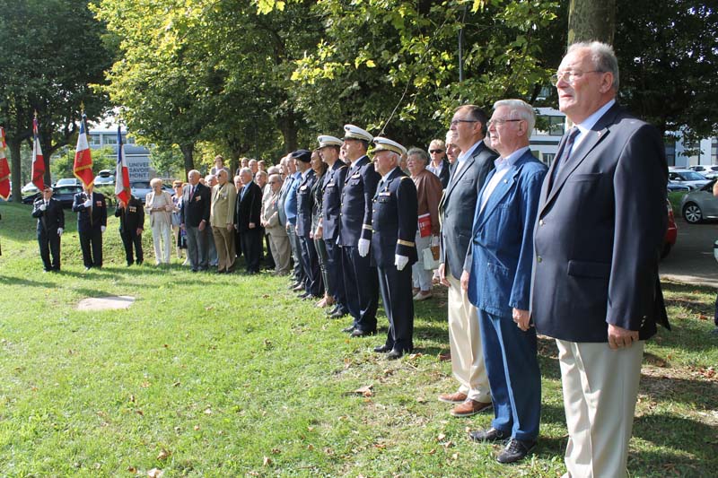 une gerbe au pied des stèles suivi de la sonnerie aux Morts,