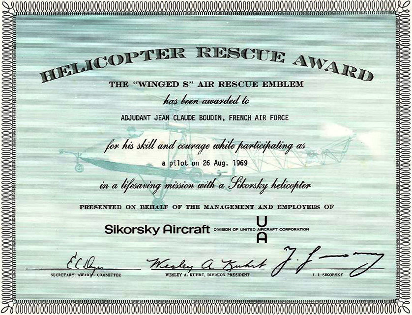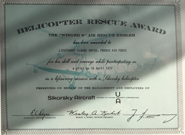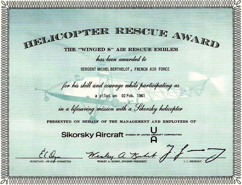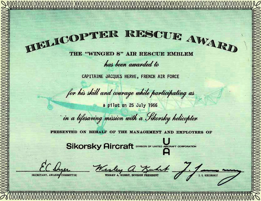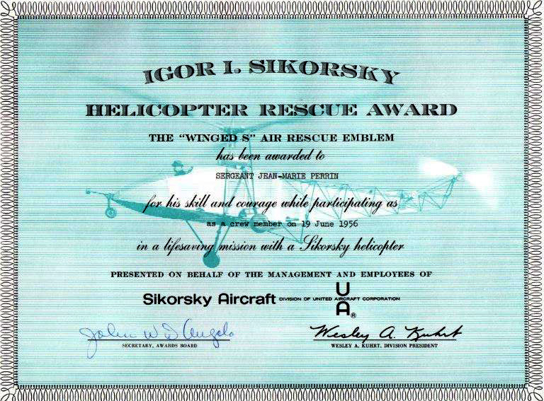 Sikorsky " pour avoir effectué 3525 heures de vol sur H34