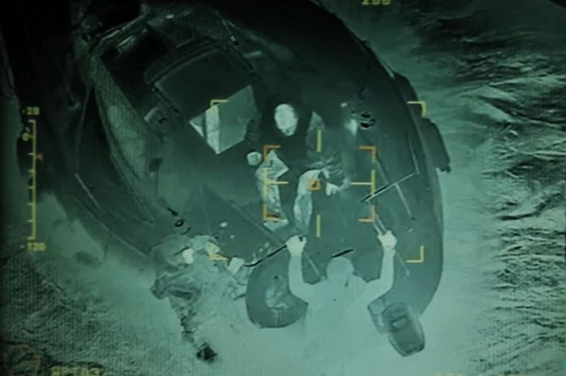sauveteurs plongeurs depuis l’hélicoptère, en pleine