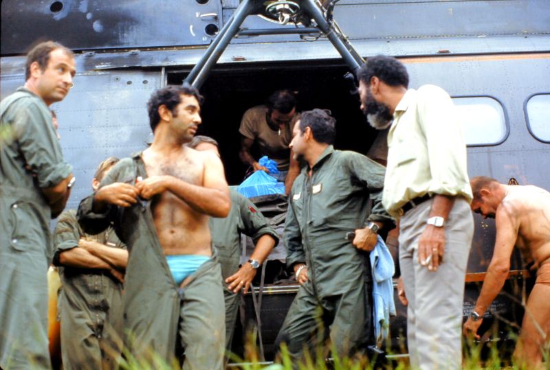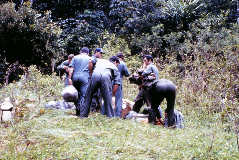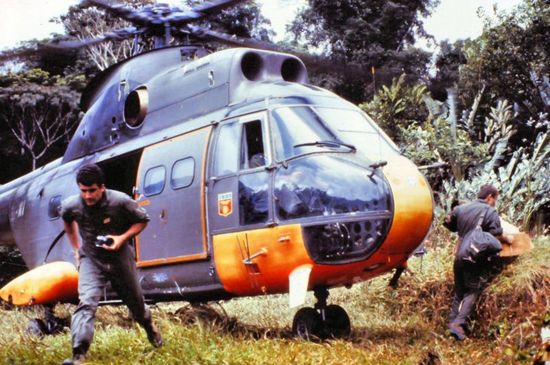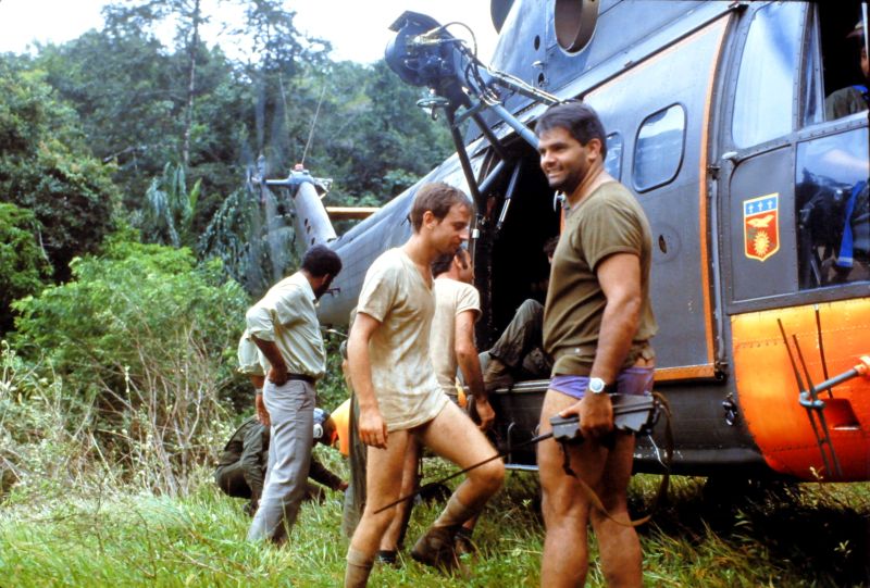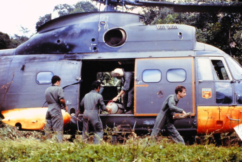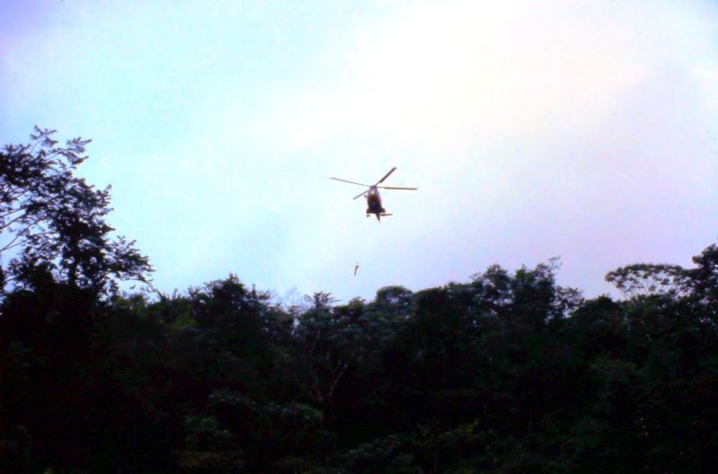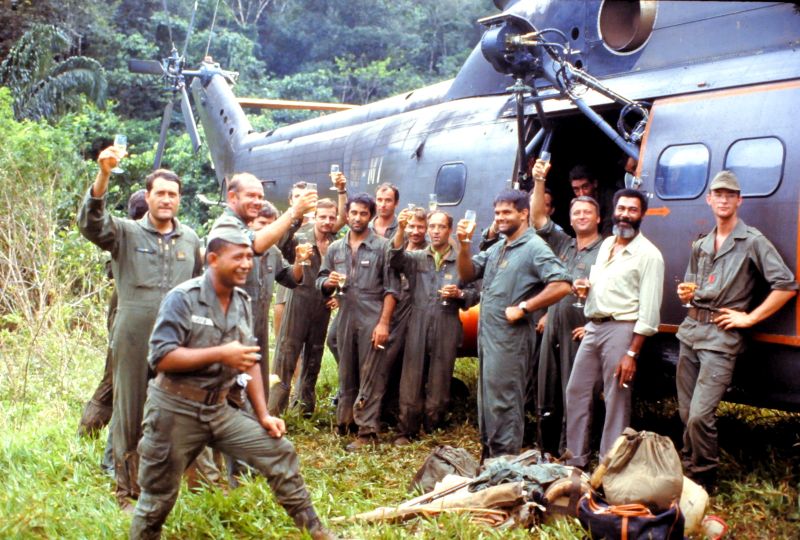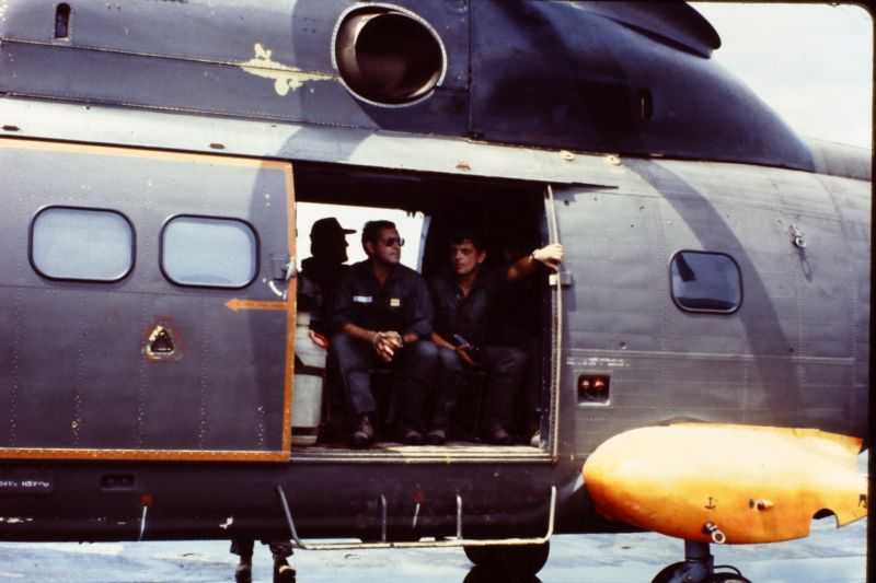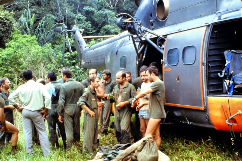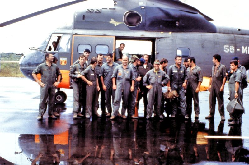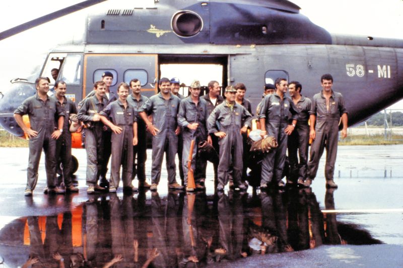 Equipage hélicoptère détachement Cayenne : Cne Escrihuela Yvan pilote Adj Chardon Gilles pilote S/C Ciccoli Paul Mec Adc Raymond Mec Nav Adc Sanchez Jacques Mec Nav