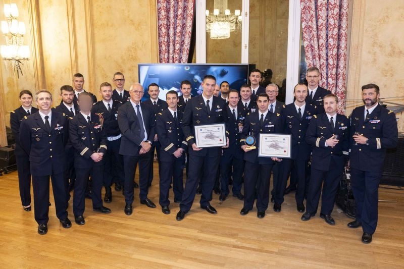 remise exceptionnelle d'un trophée commun à trois escadrons,