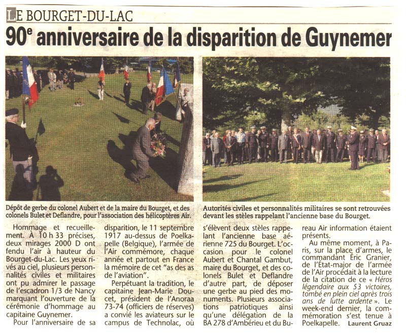 La mémoire du Capitaine GUYNEMER fut évoquée, lecture de