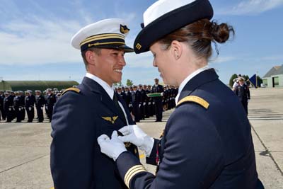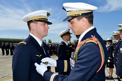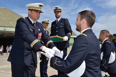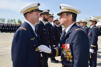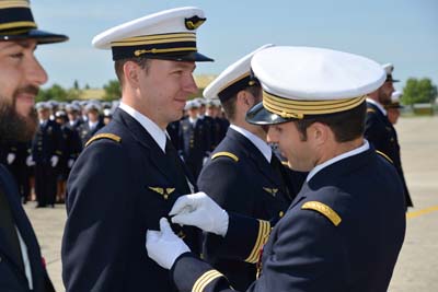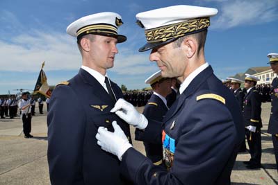 accroche la médaille de l’aéronautique sur le fanion du CIEH.