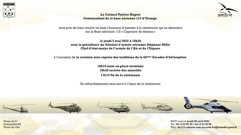 la BA115 présente le nouveau Commandant de la 65ème EH. |