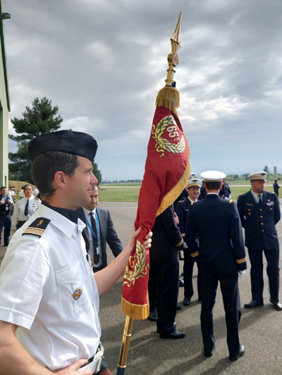 confie le drapeau de la 65ème EH au Col. Cédric Loubet. |