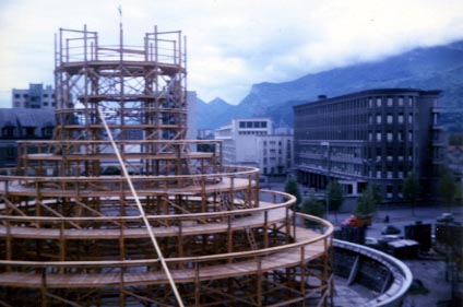 de planches mais spiralées en sens inverse; des panneaux de bois