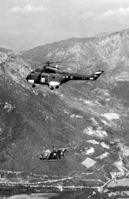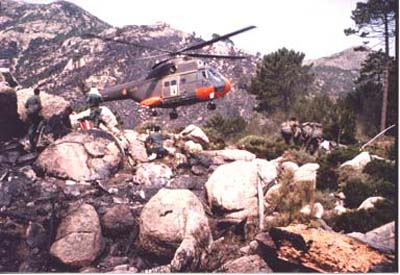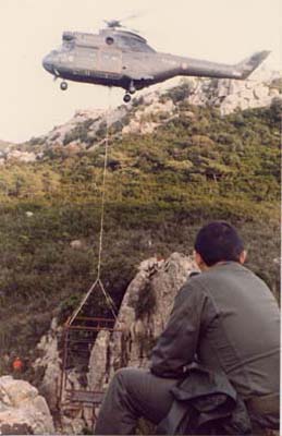Aide à l'Armée de Terre "sling" d'un obstacle de parcours commando à Bonifacio Avril 1986 .